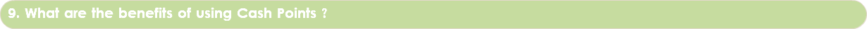 • 9. What are the benefits of using Cash Points ?